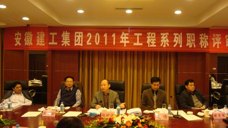 11月24日至26日,安徽建工集團(tuán)2011年度工程系列職稱(chēng)評(píng)審會(huì)在安徽水利·六安沃爾特大酒店召開(kāi),集團(tuán)所屬各單位的包括建筑、路橋、水利等專(zhuān)業(yè)共413名專(zhuān)業(yè)技術(shù)人員申報(bào)了職稱(chēng)評(píng)審。省人社廳專(zhuān)業(yè)技術(shù)人員管理處調(diào)研員吳偉、副處長(zhǎng)胡建華、省國(guó)資委人事教育處副處長(zhǎng)鄭洪國(guó)蒞臨會(huì)議指導(dǎo),集團(tuán)總經(jīng)理、集團(tuán)高評(píng)委主任趙時(shí)運(yùn)主持會(huì)議。