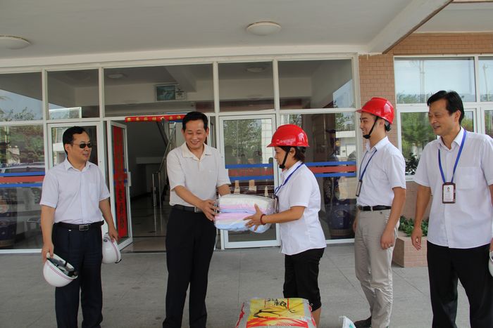 8月1日下午,烈日炎炎,酷暑難耐。集團(tuán)公司工會(huì)主席、紀(jì)委書記牛曙東在集團(tuán)工會(huì)副主席吳曉伍、女工部主任胡愛紅陪同下,風(fēng)塵仆仆地來(lái)到安徽建機(jī)公司,看望慰問(wèn)奮戰(zhàn)在生產(chǎn)一線的員工,并送來(lái)了許多消暑日用品及綠豆、白糖等。