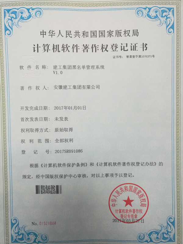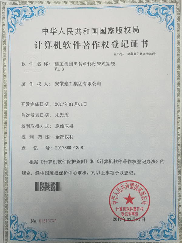 近日,由集團信息管理部自主開發(fā)的《建工集團黑名單管理系統(tǒng)V1.0》、《建工集團黑名單移動管理系統(tǒng)V1.0》獲得計算機軟件著作權登記證書(編號:軟著登字第1676370號、軟著登字第1676642號),截至目前,集團信息管理部已經獲得5項軟件著作權證書。