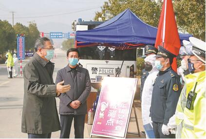 上午,李錦斌驅(qū)車2個多小時,來到毗鄰湖北省黃岡市黃梅縣的105國道檢測站皖鄂省際檢測點,實地檢查交通管制、體溫檢測、應急處置等情況。他指出,實行交通管制是“防輸入”的第一道關(guān)口,要從嚴執(zhí)行國家和省里相關(guān)規(guī)定,統(tǒng)籌做好疫情防控和交通運輸保障工作,既嚴格檢查又文明服務(wù),確保做到“一斷三不斷”,即堅決阻斷病毒傳播渠道,堅決保障公路交通網(wǎng)絡(luò)不斷、應急運輸綠色通道不斷、必要的群眾生產(chǎn)生活物資的運輸通道不斷。左壩鄉(xiāng)碧嶺村地處皖鄂交界,是湖北省黃梅縣進入我省宿松縣的第一村。得知全村黨員自告奮勇參加疫情防控,李錦斌十分欣慰,他說,疫情防控是檢驗黨員初心使命的考場,要全面動員起來、全體行動起來,發(fā)揮好基層黨組織戰(zhàn)斗堡壘作用和黨員先鋒模范作用,讓黨旗在戰(zhàn)“疫”一線高高飄揚。經(jīng)過宿松縣城玉龍社區(qū),李錦斌臨時停車,來到高家大屋值守點,向工作人員了解往來人員登記、包保責任落實等情況,并向他們表示親切慰問。他強調(diào),減少人員聚集是阻斷病毒傳播的重要舉措,要加強宣傳引導,倡導文明新風,教育引導群眾不擺席、不聚餐,盡量少串門、少走動,嚴防聚集性疫情發(fā)生。