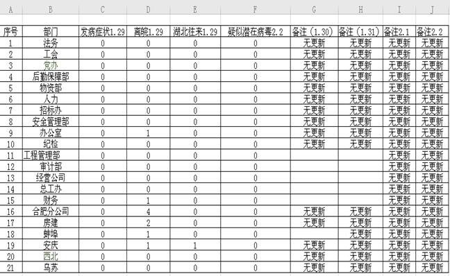 四是日?qǐng)?bào)制度。自1月26日起實(shí)行日?qǐng)?bào)制度,各分公司、各部門認(rèn)真做好登記,確保信息及時(shí)準(zhǔn)確,形成春節(jié)休假期間上下聯(lián)動(dòng)、聯(lián)防聯(lián)控的疫情防控工作格局。