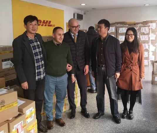 春節(jié)期間沒有回國探親,選擇堅守海外一線的駐阿經(jīng)理部黨總支書記韓立兵在接到國內(nèi)通知后,立刻組織物資采購和翻譯人員成立臨時采購小組,帶隊挨家走訪藥店,挨個打電話聯(lián)系醫(yī)療設(shè)備批發(fā)商,尋找符合國內(nèi)防疫需求的物資。幾經(jīng)奔波,終于尋得一家藥店承諾可訂購10萬個醫(yī)用外科口罩,大家精神振奮,心里懸著的石頭終于落了地。然而,次日清晨采購小組按照約定來到藥店取貨時,卻被告知只到貨5000個口罩。同時,另一家承諾可出售防護(hù)服的醫(yī)療器材供貨商也只拿出了不符合國內(nèi)防疫要求的半身式防護(hù)服和3000個醫(yī)用外科口罩。失望之余,大家并不氣餒,繼續(xù)拿起手機(jī)撥打電話,努力搜索貨源信息。功夫不負(fù)有心人,很快,韓立兵得到信息,一家醫(yī)療器材進(jìn)口商正在出售3M防護(hù)服。此時,忙碌了一上午采購小組顧不上吃飯,立即趕到這家進(jìn)口公司,驚喜地發(fā)現(xiàn),除3M防護(hù)服外,這家還有存量不小的與N95功效相當(dāng)?shù)臍W標(biāo)FFP2口罩。由于防護(hù)服貯存在較遠(yuǎn)的倉庫,為爭分多秒,盡早將物資送往國內(nèi),采購小組決定先購買2400個FFP2現(xiàn)貨口罩,連同當(dāng)天購得的醫(yī)用外科口罩一起,送往DHL航空貨運(yùn)公司辦理加急發(fā)運(yùn)手續(xù)。