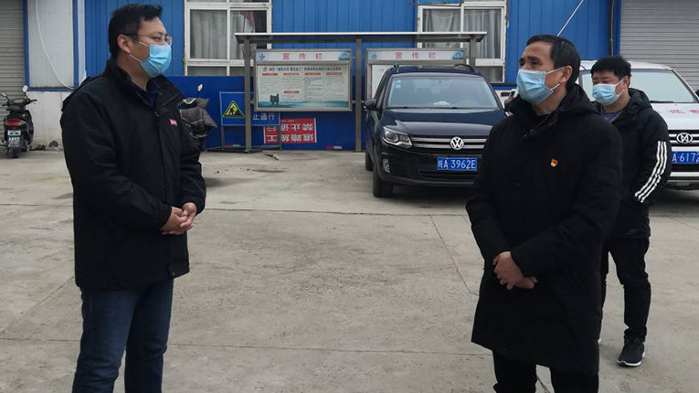 2月14日上午,固鎮(zhèn)縣住建局局長陳大鵬赴安建建設(shè)公司第四工管部檢查指導(dǎo)疫情防控工作,第四工管部負(fù)責(zé)人盧朋陪同。