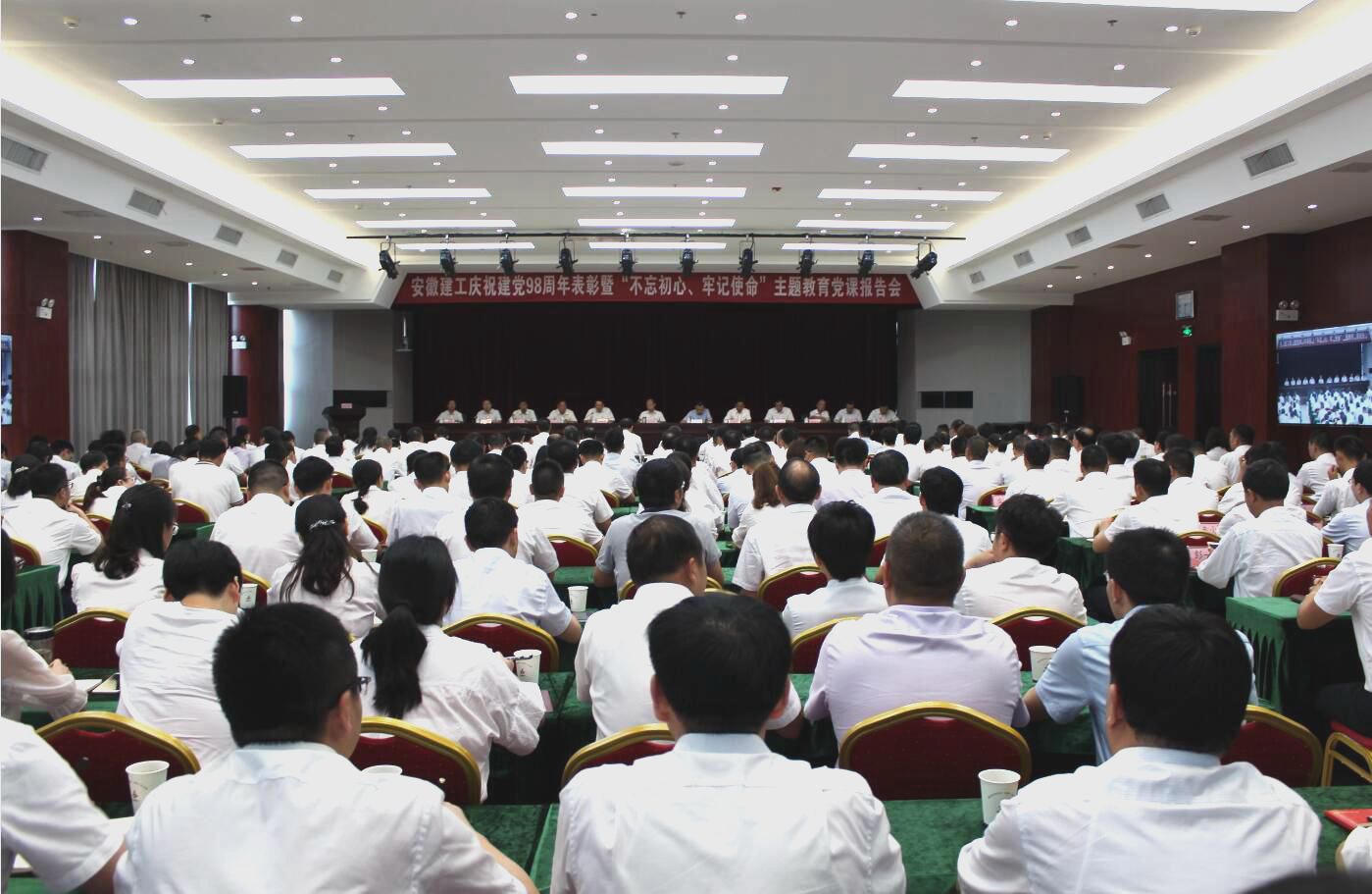 為慶祝建黨98周年,深入開(kāi)展“不忘初心、牢記使命”主題教育,7月1日下午,安徽建工控股黨委慶祝建黨98周年表彰暨“不忘初心、牢記使命”主題教育黨課報(bào)告會(huì)在安建大廈三樓會(huì)議室舉行。會(huì)議堅(jiān)持以習(xí)近平新時(shí)代中國(guó)特色社會(huì)主義思想為指導(dǎo),號(hào)召集團(tuán)各級(jí)黨組織和全體黨員更加緊密地團(tuán)結(jié)在以習(xí)近平同志為核心的黨中央周?chē)?,不忘初心、牢記使命,團(tuán)結(jié)一心、拼搏奮斗,堅(jiān)持用高質(zhì)量黨建引領(lǐng)企業(yè)高質(zhì)量發(fā)展,為打造一流安徽建工、建設(shè)現(xiàn)代化五大發(fā)展美好安徽作出新的更大貢獻(xiàn)。