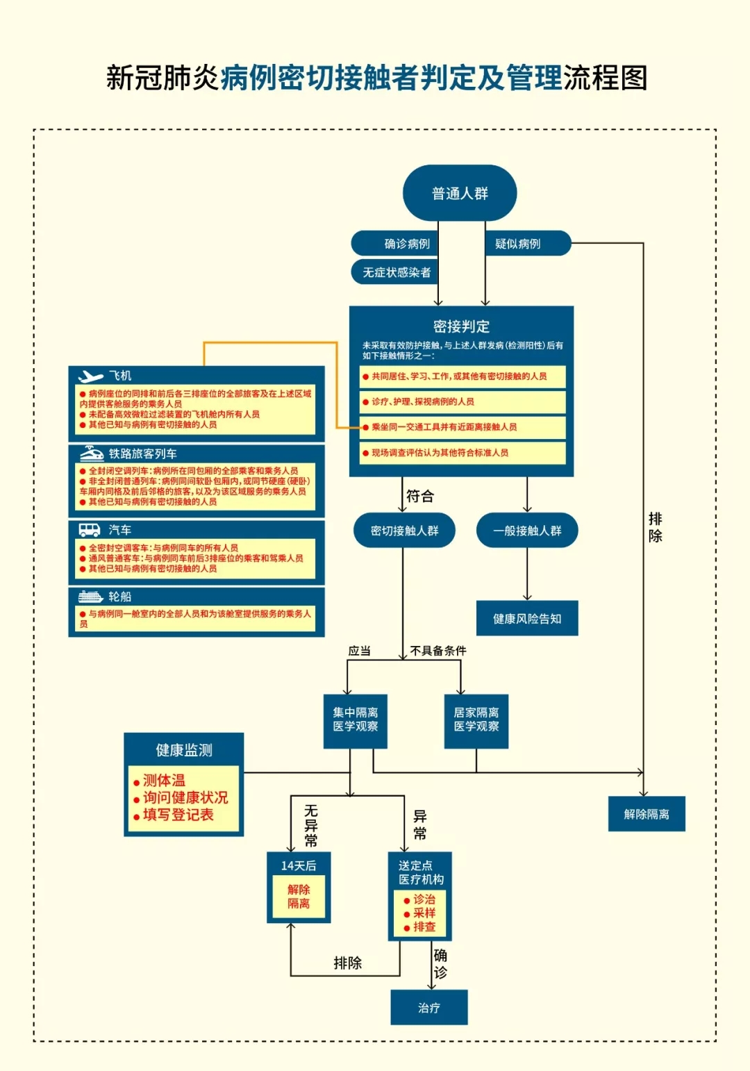 新冠肺炎病例密切接觸者判定及管理流程圖