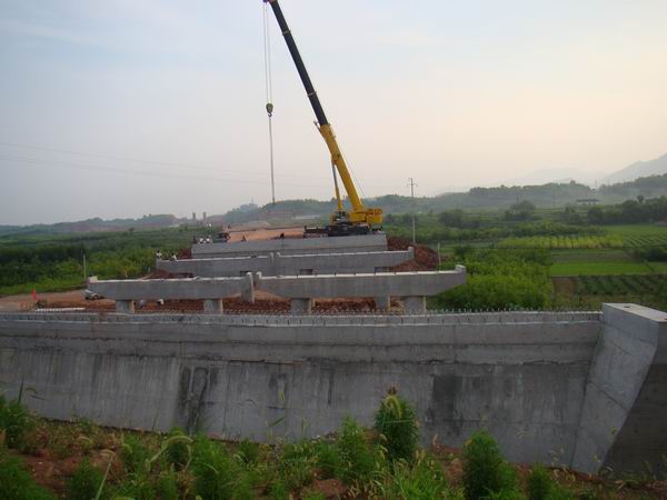 K5+300橋共三跨60片空心板梁,計(jì)劃3天內(nèi)完成全橋板梁吊裝工作。第一片空心板梁吊裝工作的預(yù)期完成,為下一 步吊裝工作的依次進(jìn)行奠定了基礎(chǔ)。