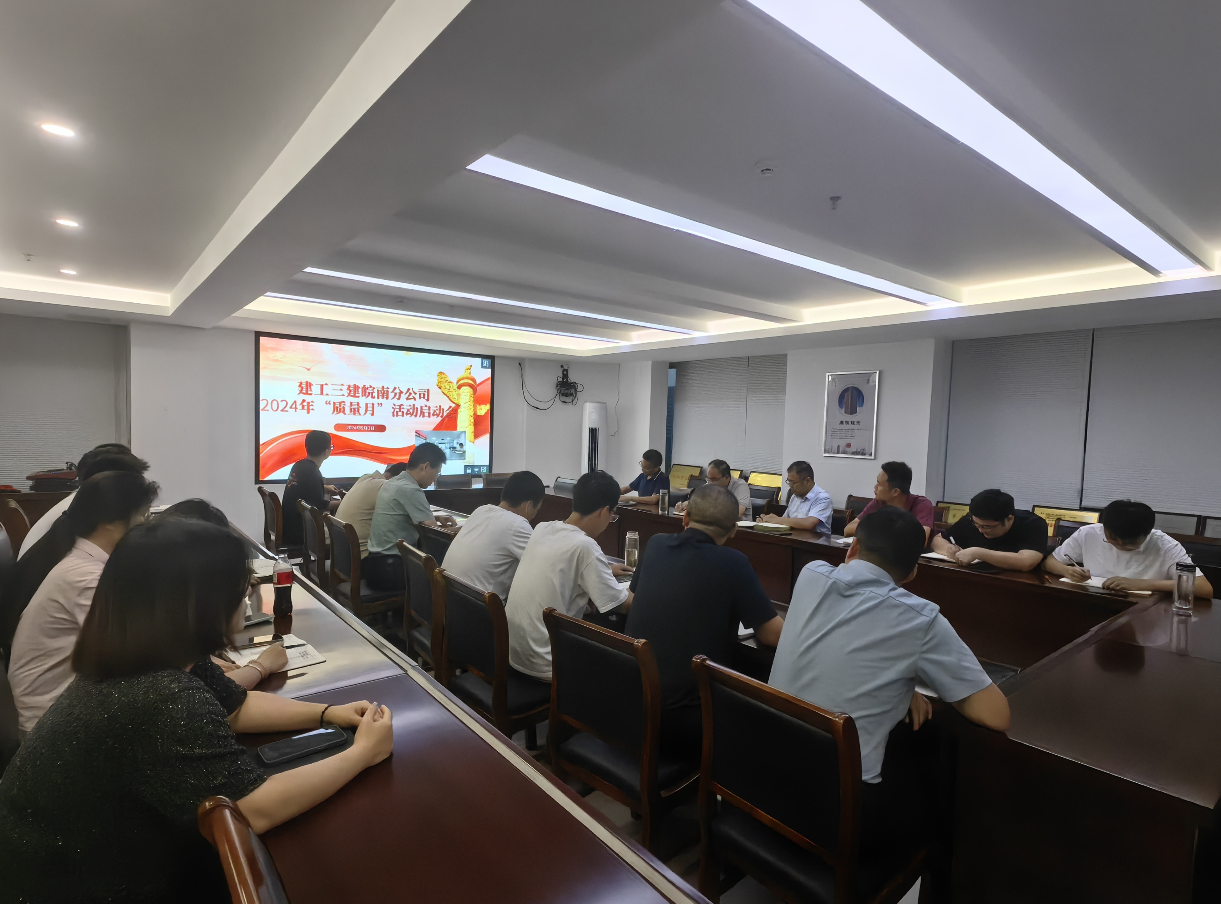 近日,皖南公司以現(xiàn)場+視頻的方式組織召開2024年“質(zhì)量月”活動啟動會。分公司領(lǐng)導(dǎo)班子、機(jī)關(guān)各科室成員及各項目經(jīng)理等20余人參會。