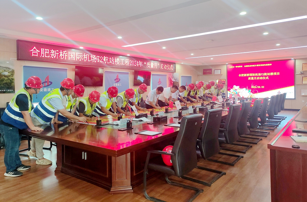 近日,第三公司在合肥新橋國際機(jī)場T2航站樓工程項目舉行2024年“質(zhì)量月”啟動儀式。全體管理人員圍繞“加強(qiáng)質(zhì)量支撐 共建質(zhì)量強(qiáng)國”主題開展質(zhì)量承諾簽名,積極營造崇尚質(zhì)量、追求卓越的濃厚氛圍,為打造精品工程、標(biāo)桿工程、樣板工程筑基賦能。
