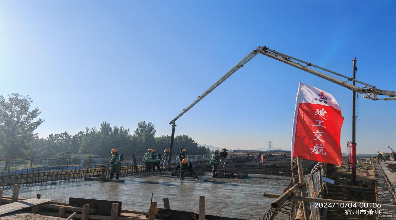 近日,經(jīng)過 10小時(shí)的連續(xù)奮戰(zhàn),徐淮阜高速宿州段路基02標(biāo)項(xiàng)目孫圩子互通C匝道橋最后一聯(lián)現(xiàn)澆頂板澆筑完成。這標(biāo)志著孫圩子互通區(qū)所有現(xiàn)澆梁全部圓滿澆筑完成,項(xiàng)目全面進(jìn)入快速收尾階段,為實(shí)現(xiàn)早日通車目標(biāo)打下了堅(jiān)實(shí)基礎(chǔ)。