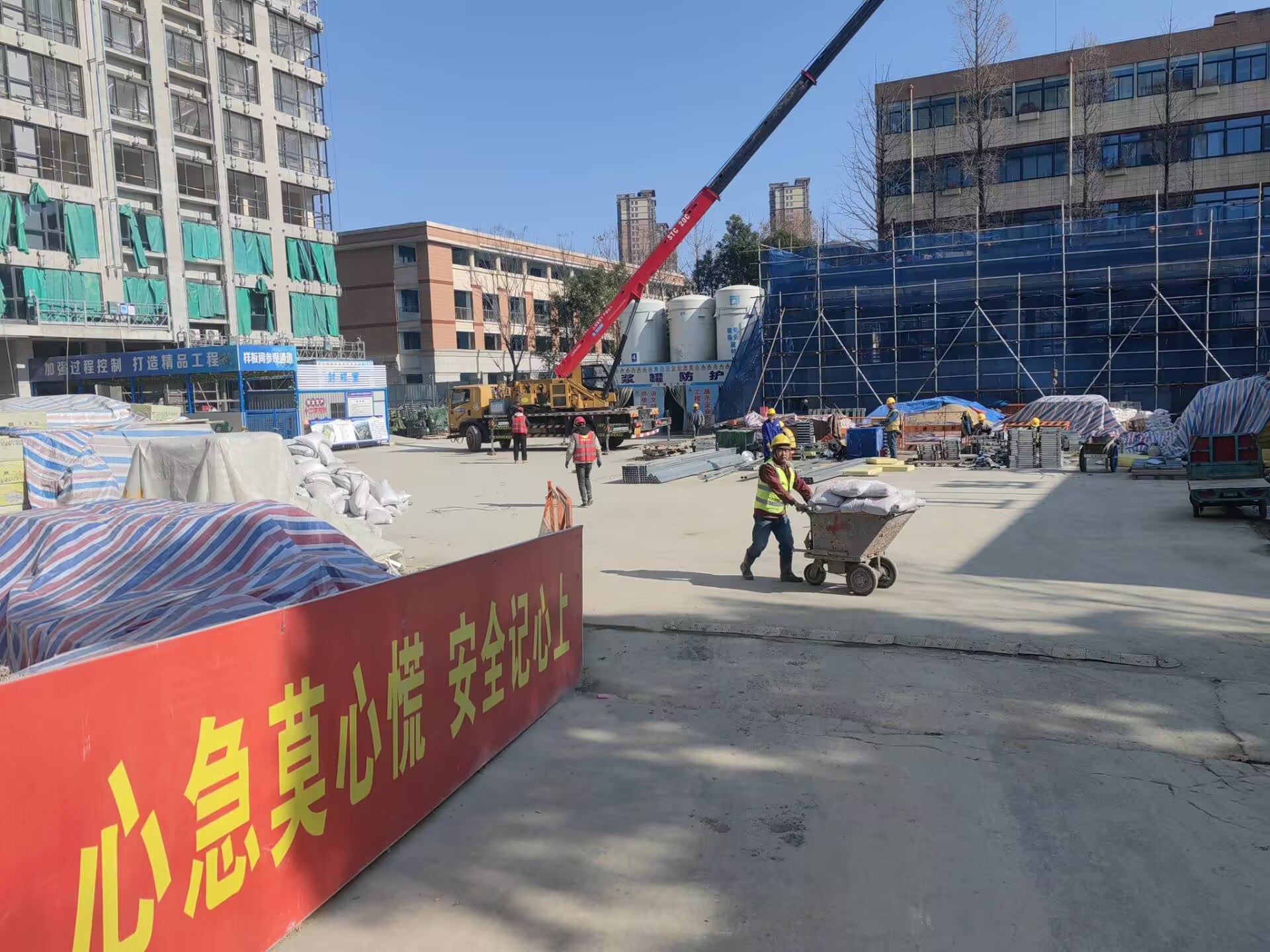 節(jié)后復(fù)工,安全是第一位的。項(xiàng)目部在復(fù)工前對(duì)施工現(xiàn)場(chǎng)進(jìn)行了拉網(wǎng)式排查,重點(diǎn)檢查了深基坑、高支模、腳手架等危險(xiǎn)性較大的分部分項(xiàng)工程,對(duì)發(fā)現(xiàn)的安全隱患立即整改,確保施工安全。同時(shí),為了保障施工進(jìn)度,項(xiàng)目部合理安排施工人員和機(jī)械設(shè)備,確保各項(xiàng)施工任務(wù)按時(shí)完成。